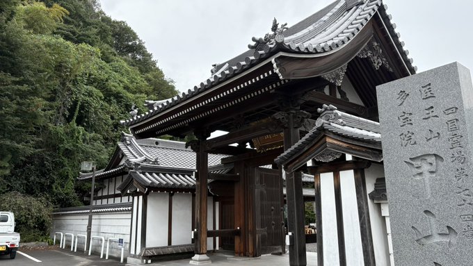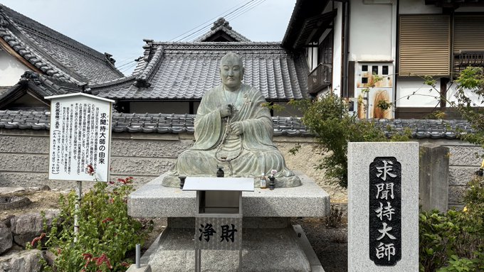 홍법대사 쿠카이가 7세일 적, 이 절이 있는 산에 찾아가서 불도에 귀의해서 중생을 구하고 싶다, 제 소원이 이루어진다면 석가여래님 나타나주세요. 안 된다면 제 목숨을 거두어주세요하고 몸을 던졌고, 석가여래와 선녀가 나타나서 소년 쿠카이를 구했고, 나중에 성인이 된 쿠카이가 그 자리에 절을 세웠다는 게 이 절의 유래라 합니다. (釈迦出た-!!인가)
