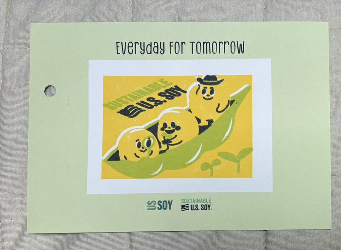 광화문 광장의.. 그 팝업 자주 열리는 건물에서 열렸던 미국대두협회 캠페인에서 찍은 스탬프입니다. 콩 농사는 지속가능한 농업이니까 많이 먹어주세요! 라는 내용으로 저 엽서를 찍으면 룰렛을 돌려서 선물을 줬어요.