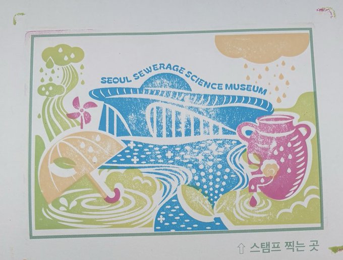 서울 하수도 과학관 자체도 자체 스탬프가 있어서, 다 찍으면 자로도 쓸 수 있는 투명 책갈피를 줍니다(나름 예쁨).