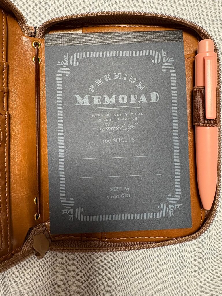 앞쪽 슬립은 위쪽으로도 트여있어서 B7 노트패드도 끼울 수 있습니다.(로디아 13번-A6-은 끼워는지는데 아슬아슬하게 안 닫힘)